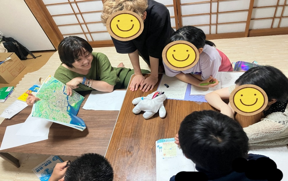 学習支援にて、こども・若者が楽しく勉強をしている様子の写真です。
