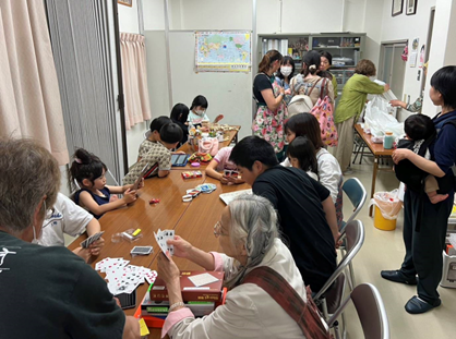 勉強・食事を終え、ボランティアの大学生や地域の方と遊ぶこどもたちの様子。