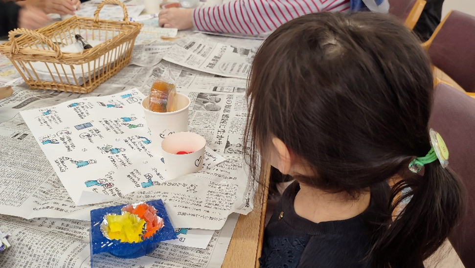 せっけんづくりイベントの様子。福祉施設の職場体験をケアハウス、つどいの広場と合同で実施しました。